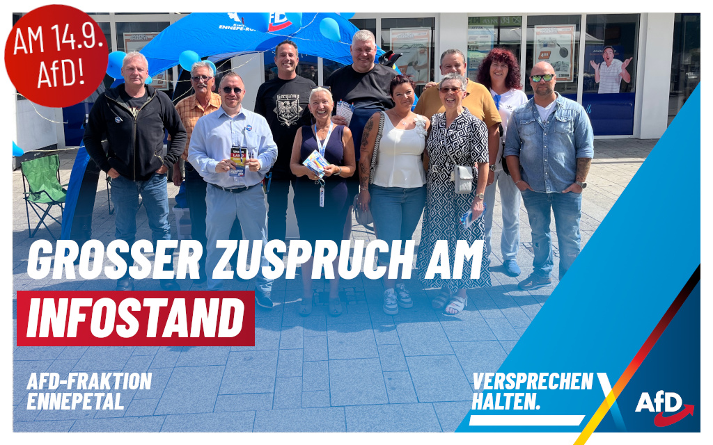 Erfolgreicher Start: AfD Ennepetal startet mit starkem Infostand in den KommunalwahlkampfEnnepetal, 19. Juli 2025 – Bei strahlendem Sommerwetter startete die